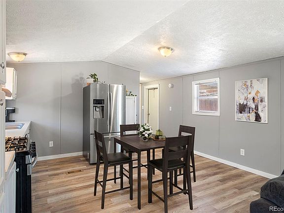 Welcome to this delightful and charming home! Boasting 3 bedrooms and 2 full bathrooms, it features an inviting open concept layout with stainless steel appliances that make cooking a joy. The covered patio offers the perfect space for entertaining guests or relaxing with family, while the stamped pavement surrounding the home adds to the curb appeal. Conveniently located close to Saddleback Golf Course, Colorado National Speedway, and with easy access to I-25, you'll never run out of things to do. Additionally, the home is attached to a permanent foundation with all documentation available. And the best part? This property has no HOA or lot fees, making it a perfect choice for those looking for a stress-free and affordable lifestyle. Don't miss out on this amazing opportunity to own a well-maintained and move-in ready home that you'll love for years to come!