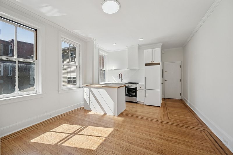 - Brownstone bones: high ceilings, hardwood floors, oversized wrap-around windows along the south and east walls flood the space with natural light