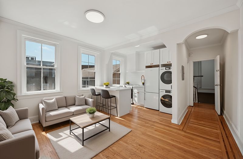 - Brownstone bones: high ceilings, hardwood floors, oversized wrap-around windows along the south and east walls flood the space with natural light