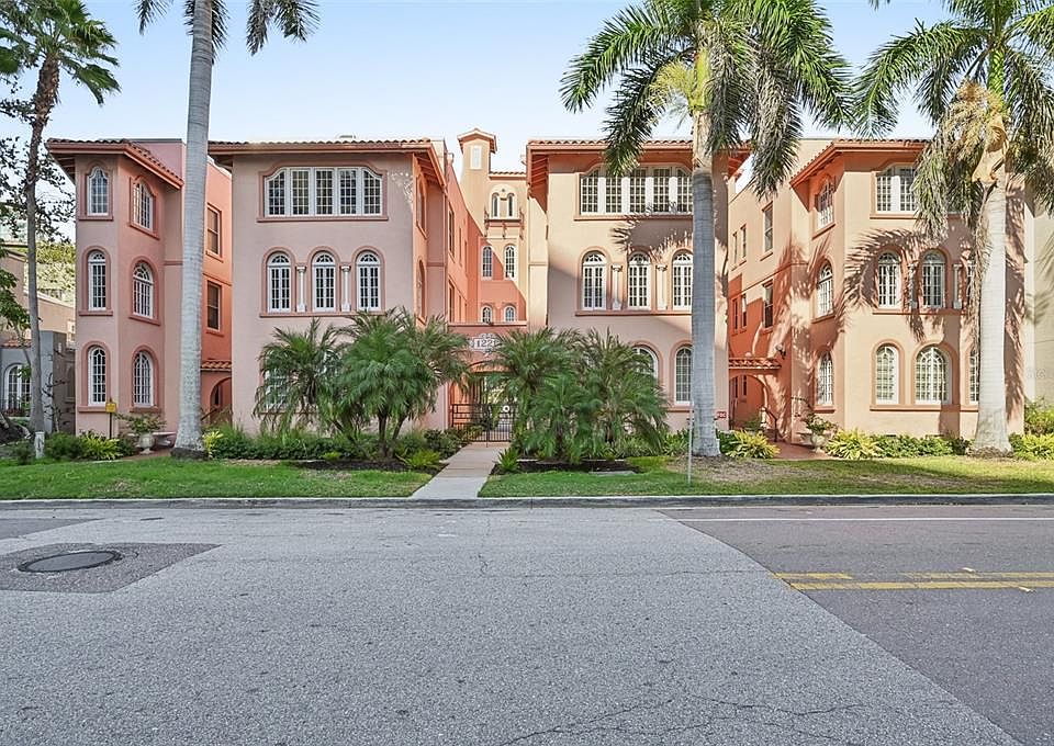 Wonderful opportunity to own a charming piece of Sarasota History in a prime location at an incredible value. This one bedroom, one bath floor plan with a gorgeous sun room (ideal for a den or study) is located in the Frances Carlton building, a designated Historic Sarasota Structure, built in 1924 in the Mediterranean Revival style. The condo community has only 20 residences and offers a lovely community pool, outside gathering area and a gated parking lot with designated parking spaces. Step into this condominium and imagine the possibilities. Your Great Room is spacious and open to the delightful light-filled Florida Room with arched Palladian windows. Your Primary Bedroom has 3 large windows and a built-in closet. The bathroom features a large tub with shower and your kitchen is well laid out and functional. There is a washer/dryer combo in the kitchen as well. This condo also offers an inside storage area. The condo features beautiful wood-plank laminate in the living areas and tile in the kitchen and bathroom. The A/C was replaced in 2019. Walk to the Sarasota Waterfront and enjoy lunch at Marina Jacks or stroll to Main Street, the Selby Library, theaters, galleries, restaurants & coffee shops and everything beautiful Downtown Sarasota has to offer. Close to world class beaches and St. Armands Circle as well. Frances Carlton has a wonderful ambiance and is a well managed condominium complex with excellent security. It is also the first condominium building in the state of Florida to have passed the Structural Integrity study. Schedule your showing today!
