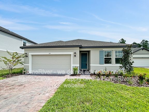 Welcome to 1221 Pampus Dr! This new build 4-bedroom, 3-bathroom home offers approximately 2,190 sq. ft. of modern living space with a 2-car garage, located in the desirable Legends Preserve community of Daytona Beach. The open-concept design features bright, comfortable living areas and a beautifully upgraded kitchen with a stylish tile backsplash, large island, white cabinets, and a pantryperfect for both everyday living and entertaining. The master suite offers a relaxing retreat with a tray ceiling, carpet flooring, and a private en-suite bath featuring a walk-in shower, while the additional bedrooms provide flexibility for guests, a home office, or extra storage. The home also includes a convenient laundry room with a full-size washer and dryer, and sliding glass doors from the living area open to a covered back patio overlooking the backyardideal for relaxing or small gatherings. Enjoy the Legends Preserve community amenities, including a sparkling pool, cabana, walking trails, playground, sidewalks, and beautifully maintained common areas. Conveniently located near shopping, schools, golf courses, beaches, and major roadways, this home combines comfort, style, and convenience. Pet-friendly (one pet allowed). Schedule your private tour today!