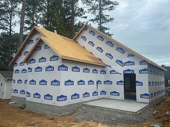 NEW CONSTRUCTION - Est. Completion date is Mid November, 2025. Just in time for the Holidays! New Construction home. Beautifully designed home combining modern finishes with farmhouse charm. Open-concept floor plan features vaulted ceilings and luxury vinyl plank flooring throughout. Kitchen includes large island, granite countertops, stainless steel appliances, custom cabinetry, and walk-in pantry. Primary suite offers vaulted ceilings and spa-like ensuite with 6' double-sink granite vanity, shiplap accent wall, 5' walk-in shower with ceiling-high subway tile, glass enclosure, private water closet, and linen closet. Second bedroom is ideal for guests, served by a full bath with oversized tub/shower. Spacious utility room and large back patio. Board and batten siding, covered front porch with custom lighting. Located on a quiet corner lot in a desirable neighborhood within city limits. Protective covenants, low HOA ($80/year), and builder's limited warranty included. Don't miss this one! The photos provided are for illustrative purposes only and are representative of the design and layout. Finishes, materials, and features may vary.