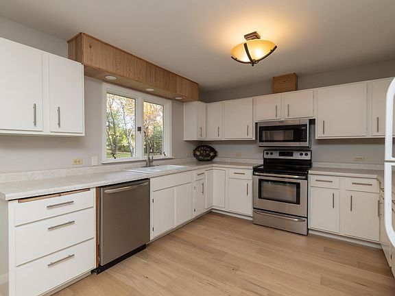 Welcome to 1221 Pearl St, a beautifully renovated 4-bedroom, 3-bathroom rambler nestled on 1.5+ acres in the heart of Prescott, WI. This rare in-town property perfectly blends the convenience of city living with the peaceful feel of the countryside. Step inside to discover fresh updates throughout, including new paint, newer LVP flooring, and carpet that give the home a warm, modern touch. The inviting eat-in kitchen flows seamlessly into a spacious living room where you can take in the stunning wooded backdrop and even catch seasonal views of the St. Croix River. The main level also features four generous bedrooms, a full bath, and a half bath for added convenience. Downstairs, you’ll find a walkout lower level with a cozy family room, a ¾ bath, laundry area with sink, and a versatile bonus room—perfect for a home office, gym, or guest space. Outside, enjoy a freshly seal-coated double entrance driveway, fire pit area, 2-car garage, and an additional tuck-under storage garage. If you’ve been looking for space, updates, and charm all in one place—this is a must-see Prescott gem!