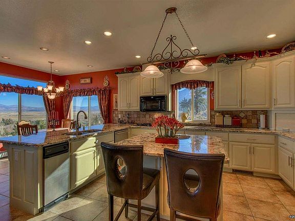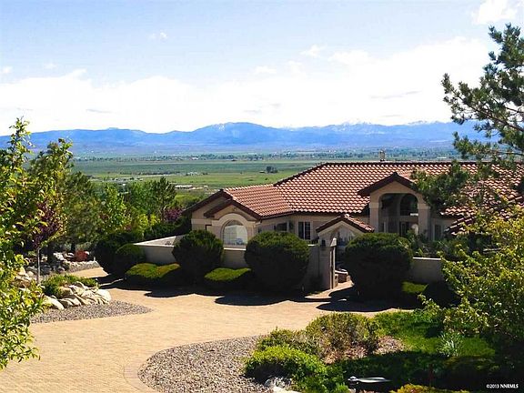AWESOME CARSON VALLEY LOCATION! Beautiful turn-key custom home on 4+ acres overlooking the entire Carson Valley. Quiet setting, private courtyard entry with mountain views. Formal dining & living room for special gatherings. Large family room, lovely sunny kitchen with breakfast nook & counter seating. Beautiful master suite on the main level has amazing views, marble fireplace, his/hers cedar walk-in closets, en-suite bath with patio, huge garden tub & large shower.
