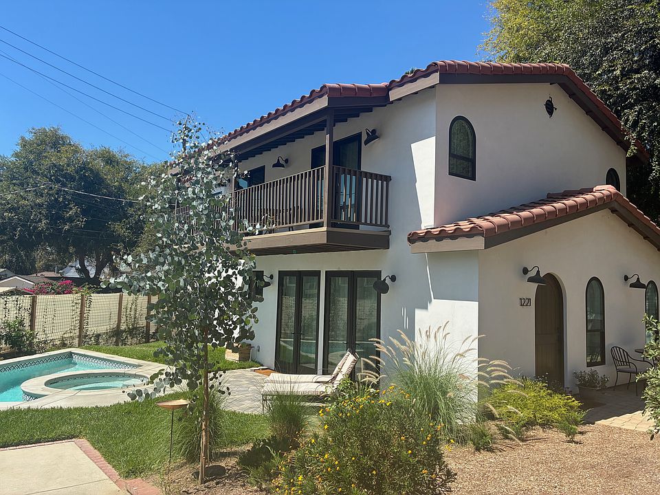 Gorgeous newly built, three bedroom two bathroom house in the coveted Rancho equestrian neighborhood of Burbank. Hear the clip clop of horses hooves as you soak up the sun in the salt water pool and hot tub. Walk to Griffith park, resultants, supermarkets. 9 ft ceilings, French doors, balcony, wood floors.Walk to Griffith Park or local shops and resultants, close to studios and Hollywood. Available for medium term, fully furnished with paid utilities; gardener, pool maintenance all included, move in with a toothbrush and a swim suit, maybe some riding boots. available 12/2/25 medium term ( 1 to 11 months ) standard vacation rental contract. exclusive access to interior space, shared access to outside space with guest house.