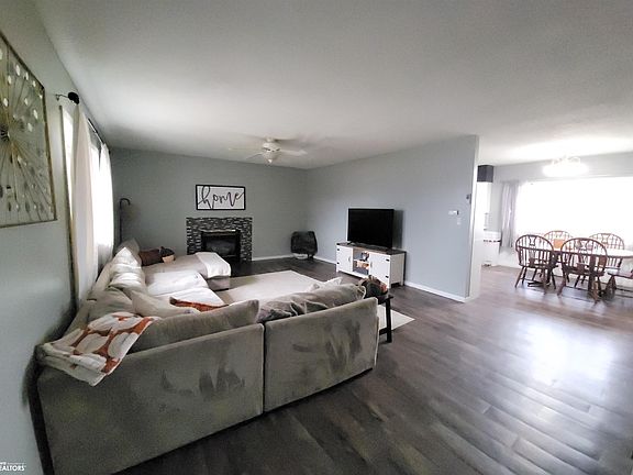 Check out this charming ranch home with a light and bright interior that flows effortlessly from the front door into the living and dining area, and then into the galley kitchen. Step outside to the fenced backyard, complete with a concrete patio perfect for relaxing and a firepit area for those upcoming cool nights. Patio furniture is included for your convenience. The home features two bedrooms and a spacious full bath. You'll also find a large family/game room with a bar area in the basement, along with the potential to create a third bedroom and a bath with a little work.