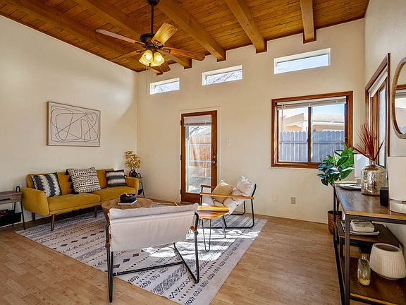 This inviting 3-bedroom, 2-bathroom home offers 1,125 sq. ft. of well-designed living space. Featuring beautiful wood floors and high ceilings with exposed beams, this home feels both spacious and cozy.