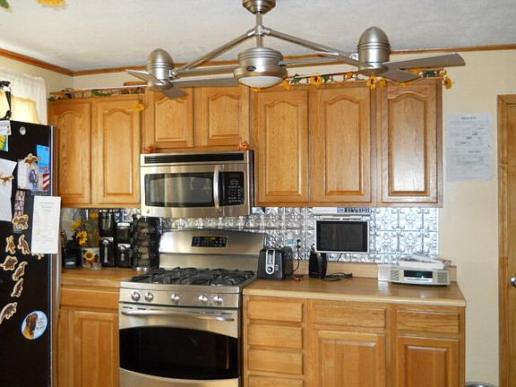 Newer oak cabinets in kitchen w/ range, refrigerator & dishwasher, unique fan & light, dining room w/ wainscot,lg. LR w/ additional bay, up are 3-4 bdrms as one is walk thru. Double doors to large deck. Huge storage shed. New windows except kitchen, laundry room. Owner will be sanding and finishing floor downstairs, plus repainting bedrooms upstairs.