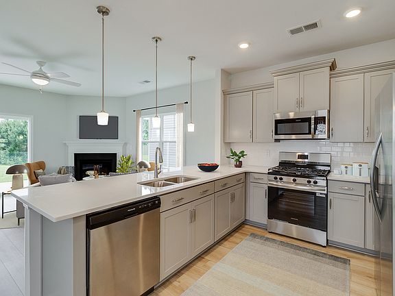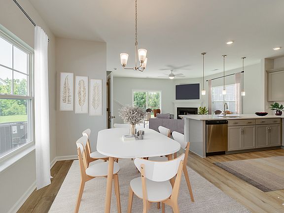 Welcome to The Falls! Come fall in love with this three-bedroom, two-and-one-half bath Dixon floorplan. This charming home offers a spacious and inviting open-concept layout blending the kitchen, dining, and spacious living area for entertaining and everyday living. The kitchen is designed for functionality and style to include quartz countertops, a gas range, modern appliances, and design upgrades. There's also a cozy fireplace in the living area perfect for winter nights. Upstairs, the primary bedroom offers a private retreat. The luxurious ensuite bath is a standout feature, showcasing a stunning garden tub, a separate tile shower with sleek finishes, and dual vanities. The walk-in closet offers ample storage. This home balances comfort, style, and functionality, making it an ideal choice for those seeking affordable living with a touch of luxury. Don't miss this amazing home!