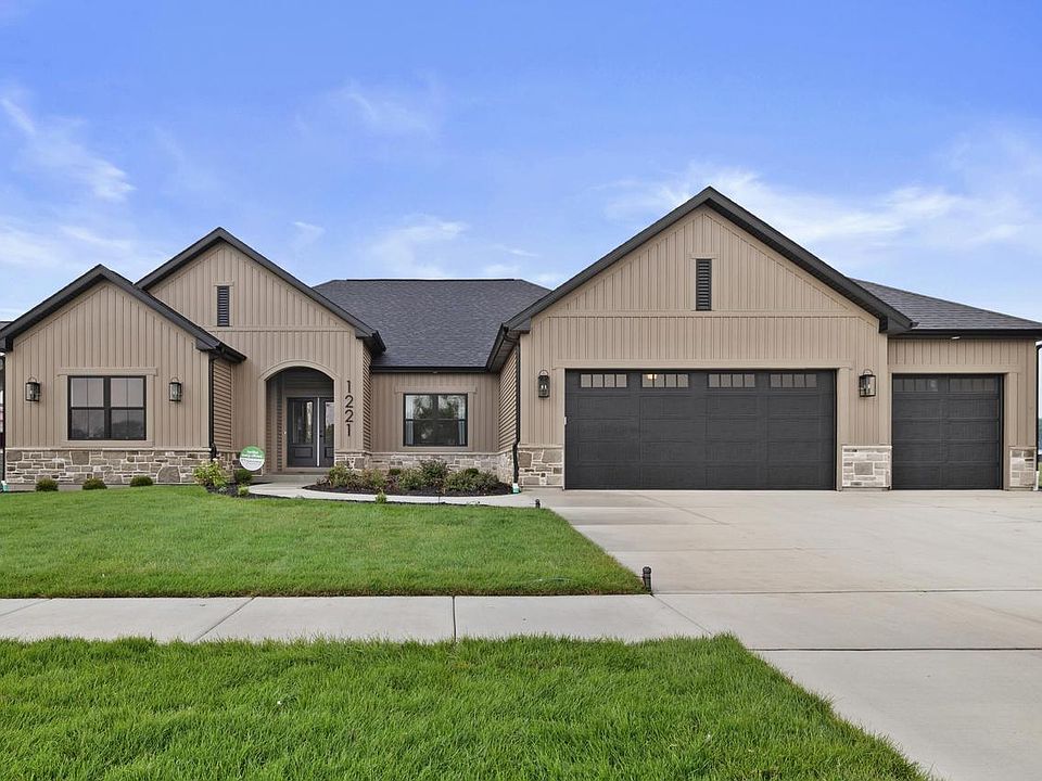 Step in to luxury in our 2025 Parade of Homes model -- the Springwood! This stunning ranch-style design offers 2,456 sq ft of thoughtfully crafted living space, including 4 spacious bedrooms for comfort and versatility. Striking curb appeal sets the tone with black windows, stone accents, vertical siding, and a 3-car garage that blends timeless elegance with modern style. Inside, soaring cathedral ceilings and an open-concept layout create a bright, inviting atmosphere designed for gathering, entertaining, and everyday living. A home that's as functional as it is beautiful -- the perfect blend of style and comfort.