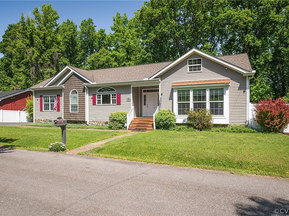 Welcome to your slice of serenity in the beautiful Mount Blanco subdivision providing its residents with private James River access and no HOA! Nature views are endless in this 3 bedroom, 2 bath home. As you enter, you’ll find an inviting open concept floor plan starting with a bright living room with crown molding and large windows allowing in an abundance of natural light. The spacious kitchen is a chef’s dream, with granite counters, bar stool seating, an island, and ample counter and cabinet space for all your prepping and storage needs! The dining area leads to the back deck, creating a seamless flow for indoor/outdoor entertaining. The large primary suite is separate from the other bedrooms providing privacy and is the perfect retreat at the end of the day. The ensuite offers a double vanity, custom tiled shower with two shower heads, and a soaker tub with built-in bookcases, the ultimate spot to relax and unwind. The other end of the home features two large guest bedrooms, a full hall bath, plus a separate laundry room with built-in storage. Outside, you will love enjoying views of the James River from your private deck equipped with low maintenance vinyl railings and a 12x10 gazebo that has a built-in fan and light for maximum comfort. The home was freshly painted in 2023 and also features 9-foot ceilings, a detached shed for storage, and an oversized 1 car garage. The Mount Blanco Park Association, offers its residents private river access, grill, and picnic area, the perfect space for entertaining friends and family. Come see all this home has to offer and schedule your tour today!
