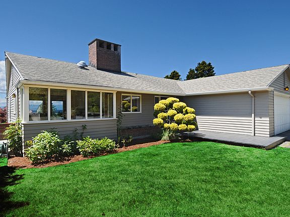 An intimate relationship through a wall of windows, this Broadview estate excites with breathtaking views of mountains and Sound. Situated on a rare oversized lot, this home offers the privacy and space you deserve. With an updated galley kitchen featuring casual dining area, rat-pack entertaining spaces inside and out, this home offers it all. Hardwood floors on both levels, two fireplaces and large family room with walk out to patio. You are sure to be impressed with this one of a kind home.