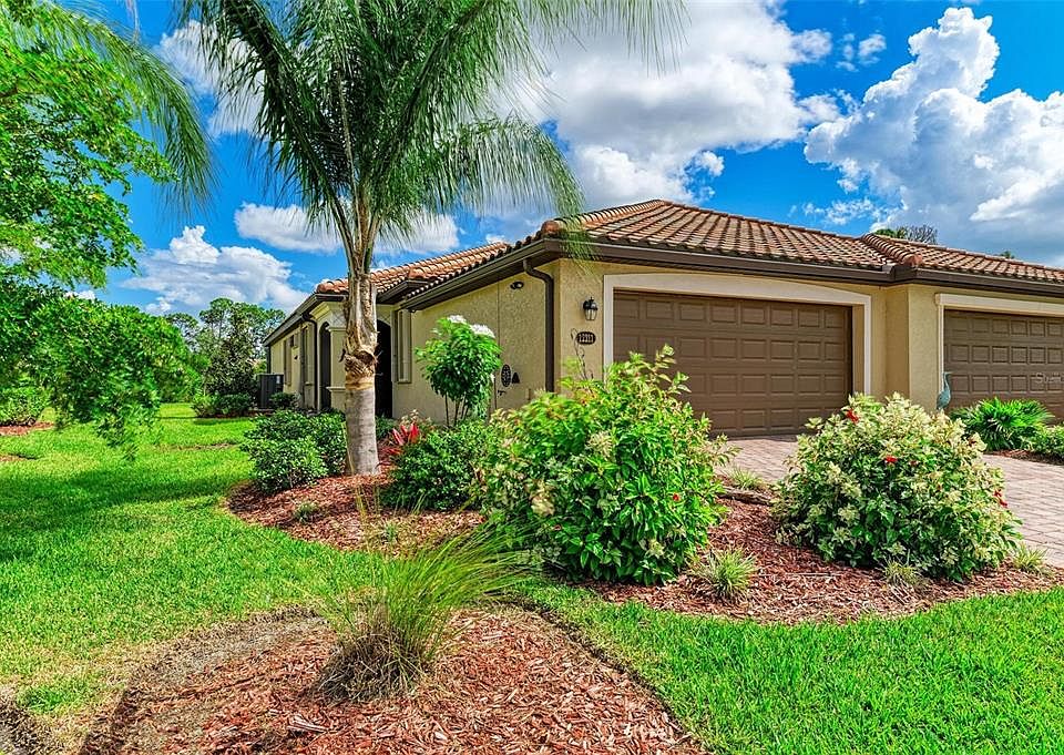 Are you in the market for a new home in Florida? Look no further than this stunning 'Orchid' villa in the highly sought after maintenance-free resort style living of Gran Paradiso. This nearly new home boasts 1,564 sq ft of fully upgraded living space, featuring 2 bedrooms, 2 bathrooms PLUS a den - perfect for a home office, media room, playroom, or hobbyist's hideaway. As soon as you walk in, you'll be greeted with natural light filling the home and a neutral color palette that will work well with any decorating style. The upgraded kitchen includes a breakfast bar, pantry, and stainless steel appliances, making cooking and entertaining guests a breeze. The owners suite features separate lanai access, two large closets, and an en-suite bathroom complete with dual sinks, custom double shower. Upgrades throughout the home include whole home water filter system, wired for generator, emergency 90 minute light system, custom closets, accordion storm shutters on all the windows and front door, Kevlar storm curtain for the lanai, under cabinet lighting, upgraded ceiling fans, and more. The large extended screened lanai offers an ideal spot to enjoy the Florida sunshine, enjoy a meal, or unwind with a glass of wine after a long day, and the HOA fees cover FIOS hi-speed internet, cable, landscaping, exterior and roof maintenance of home. In addition to the amazing home, the Gran Paradiso community offers a Tuscan-inspired Clubhouse with a billiards room, sauna, community pool & spa with poolside cabanas, tennis and pickleball courts, and so much more! Plus, with an incredible location close to area beaches and attractions in downtown Venice, Punta Gorda, Wellen Park, and Sarasota, and the community is golf cart friendly and is located near the new Atlanta Braves Spring Training Facility, you'll never run out of things to do. Don't miss out on this incredible opportunity - schedule a tour today!