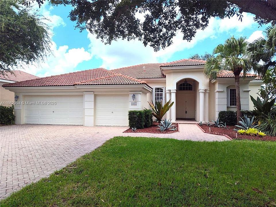 Welcome to Wyndham Lakes! Located in prestigious Bay Pointe Community. Waterfront Pool Home with Popular Triple-Split Floor plan w/4 Beds, 3 Baths, 3-Car Garage, Pavered-Patio Driveway, Accordion Hurricane Shutters, Updated Patio Oasis, Updated Pool, Plenty of Room For Entertaining, Overlooks Tranquil Water Views, Take In Beautiful Sunsets! Upgraded Floors Throughout Main Living, Laminate Floors In Secondary Beds and in Primary Bed, Large Primary Bed w/Sitting Area Overlooking Back Patio, Walk-In Closets, High Ceilings, Modern Kitchen w/Custom Wood Cabinets, Stainless Steel Appliances, & Brilliant Quartz Counters, Lush Landscaping with Mature Trees & Zoned For Stoneman Douglas High and other excellent schools. Easy to Show.