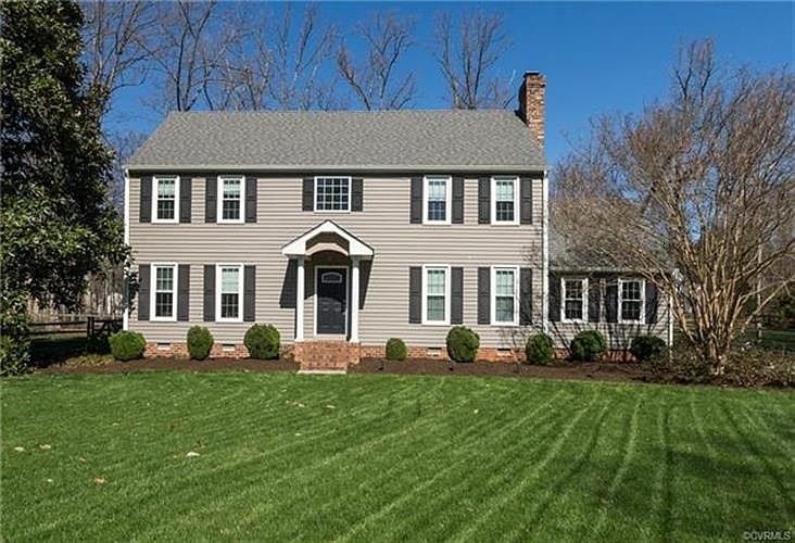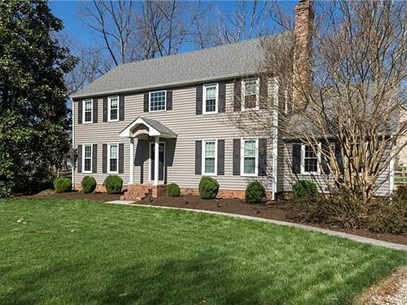 Great location off Robious corridor, Roxshire subdivision, close to shopping, schools, dining and interstates. Stunning lot with amazing lawn and landscaping, irrigation stamped concrete walkway and at the end of a cul de sac. Low maintenance vinyl exterior, newer energy efficient windows and newer dimensional roof. Come into the foyer to right is the family room with fireplace, to left is living room play room, and back of 1st floor is the formal dining room, eat-in-kitchen and bay window and 1 2 bath leading to garage. See the wood floors, beam ceiling and chair crown details. Great kitchen with granite counters, decorative tile backsplash, built in bench seating in the nook. The second floor has 3 bedrooms, one being the master bedroom with walk-in closet and full bath with heated floor, wood floor throughout and updating lighting. Also, two other spacious bedrooms with ceiling fans are located on this floor. Laundry room with washer dryer is on the second floor. Don't miss the full bath in the hall with double vanities. On 3rd floor is the 4th lg. bedroom with full bath and bonus room in the middle. All appliance convey. MUCH MORE AND A MUST SEE.................