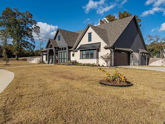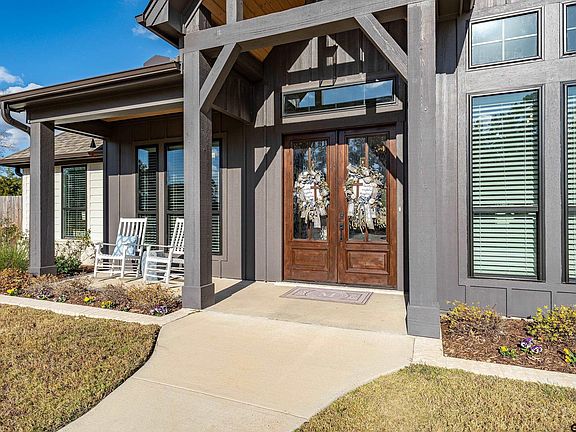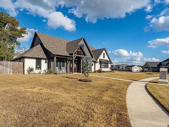 Welcome to 12213 Harlon Street, an exceptional home in the desirable Cedar Creek subdivision in Flint, Texas. Built in 2022, this 2,516-square-foot residence sits on a .55-acre corner lot and offers an ideal blend of comfort, elegance, and convenience - close to award-winning schools and the shopping, dining, and medical amenities of South Tyler. The well thought out floor plan begins with a private study featuring built-in bookcases and double French doors, along with a formal dining room filled with natural light. Hardwood floors, upgraded lighting and plumbing fixtures, custom blinds, and double crown moulding enhance the home’s refined feel. The spacious family room features vaulted ceilings and is anchored by a welcoming fireplace framed by custom built-ins, creating a warm and inviting atmosphere. The kitchen is both stylish and highly functional, offering a gas cooktop, farmhouse apron sink, walk-in pantry, and a striking quartz island designed for entertaining and everyday use. The primary suite provides a true retreat with vaulted ceilings and abundant natural light. Its spa-inspired ensuite bath includes separate quartz vanities, an oversized soaking tub, and a large walk-in shower with multiple soothing shower heads. The split bedroom layout ensures privacy for family and guests, and each secondary bedroom features its own private full bath. Outdoor living is equally appealing with a fully fenced backyard and an oversized covered patio perfect for relaxing evenings, weekend barbecues, or watching the game. Sidewalks throughout the neighborhood make it easy to enjoy evening strolls in this welcoming community. Thoughtfully maintained and beautifully finished, this impressive property offers a rare opportunity to enjoy refined living in a prime Flint location.