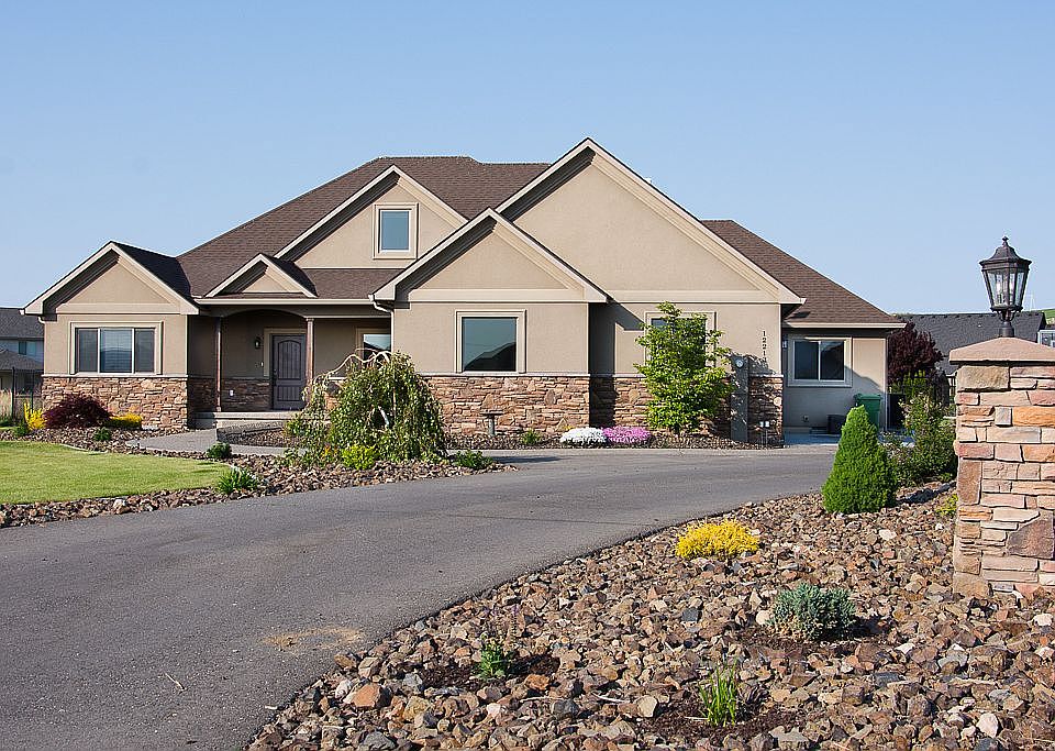 Custom Built 2009 Renz Construction Rambler Stucco and Stone Exterior on 1 Acre. Home features 10 foot ceilings, and solid core Knotty alder wood doors, hard wood floors, custom closets, Santa Fe wall textures and large bonus room. The kitchen has slab granite, raised panel knotty Alder cabinets, and tile. Outside you will find concrete mow strips, and a fully landscaped yard with covered back patio. The lot has room for a large shop or pool. Beautiful neighborhood.