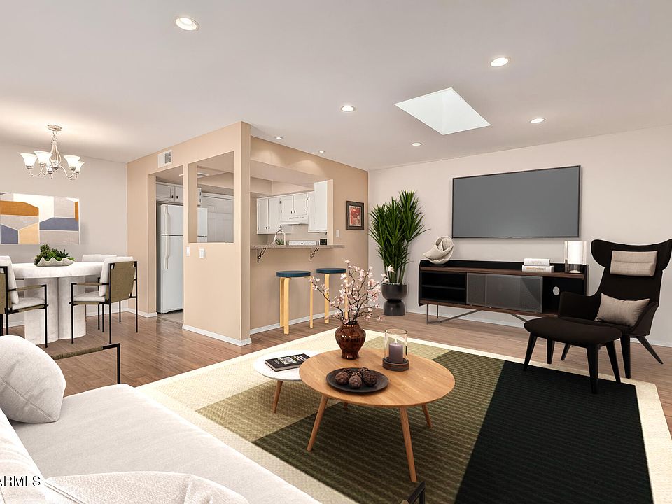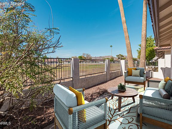 Golf course lot, Find your charming retirement home in the desirable 55+ Ahwatukee Community! 2 beds, 1 bath, & a 2-car garage w/laundry area. Enter to find an inviting great room paired with a skylight, recessed lighting, neutral paint, tile & wood-look floors, and sliding doors to the covered patio. The kitchen has built-in appliances, white cabinetry w/pull-out drawers, & a serving window w/breakfast bar. The main bedroom boasts a walk-in closet! Its bathroom, equipped with dual sinks, also connects conveniently to the hallway. Check out the backyard's open patio, where you can relax or have a fun BBQ while enjoying the Golf Course & Mountain Views! Enjoy a resort-style lifestyle just minutes away from the Ahwatukee Recreation Center! Classes, sports, fitness center PLUS!Welcome home