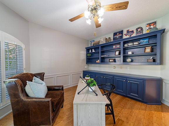 The kitchen is a chef's delight, and a breakfast area features a refrigerator that is included with the home. The laundry room boasts of built in cabinets and even better the washer and dryer are included with the home as well.