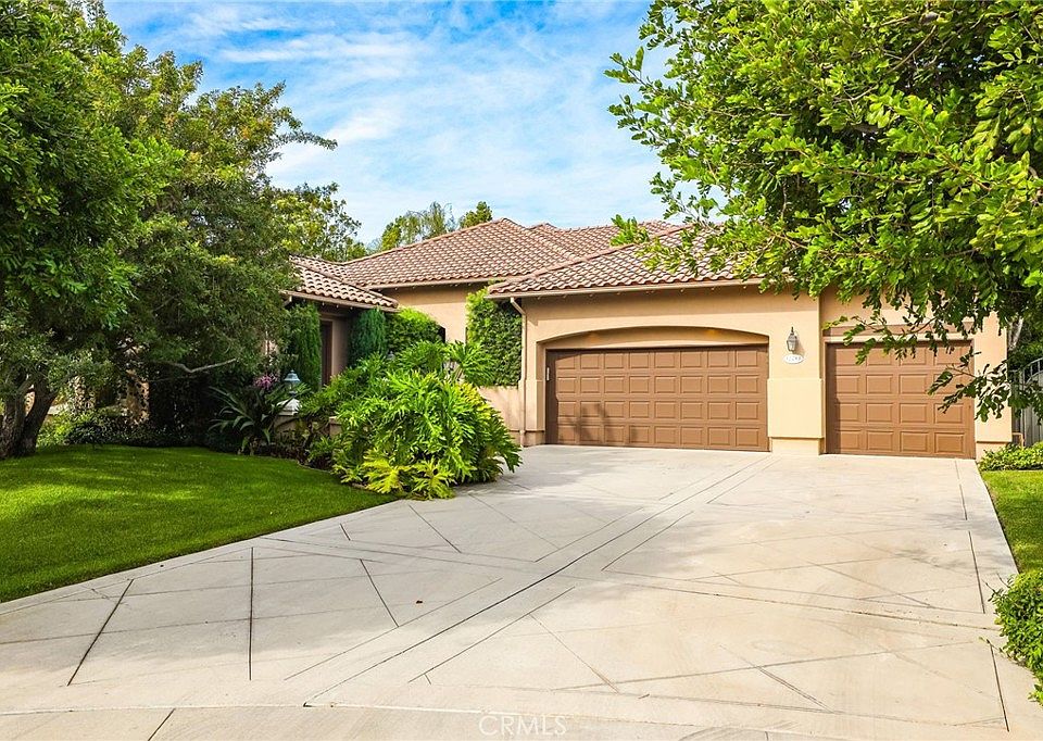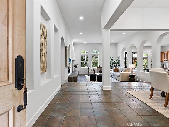 Tucked behind the gates of the prestigious 24-hour guarded Madrid community, this exquisite four bedroom three bath single-level residence offers the perfect blend of elegance, comfort, and resort-style living. A carefully landscaped gated courtyard and graceful archways set the tone as you step inside this beautifully designed home. The open-concept floor plan flows effortlessly, with arched transitions leading from one inviting space to the next. An elevated dining area overlooks the expansive living room and kitchen—ideal for hosting gatherings large or small. The chef’s kitchen impresses with a grand center island featuring a built-in cooktop, double ovens, a convenient office nook, and French doors that open to an entertainer’s dream backyard. Step outside to enjoy your private oasis complete with a covered gazebo, sparkling saltwater pool, and relaxing spa—perfect for outdoor dining and leisure. A separate family room with a half bath provides a versatile space for movie nights, a playroom, or even a home studio. The luxurious primary suite is a true retreat, highlighted by a stunning stone fireplace and an adjoining sitting room with built-in shelving—ideal for a home library, office, or fitness area. French doors provide direct access to the backyard, while archways lead to the spa-inspired primary bath featuring dual vanities, a walk-in shower, a soaking tub, and an impressive walk-in closet. The three generously sized secondary bedrooms, a well-appointed laundry room with abundant storage, and direct access to the three-car garage add everyday convenience. With its blend of sophistication and comfort, this home truly embodies the best of luxury living in one of Tustin’s most coveted communities. Welcome yourself home to 12215 Wyne Court.