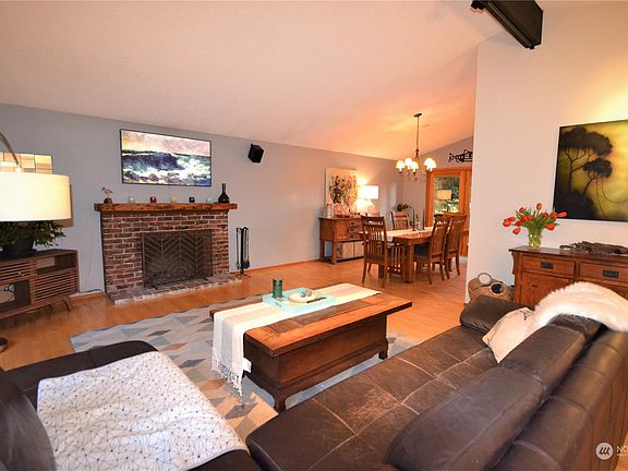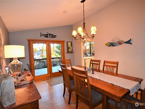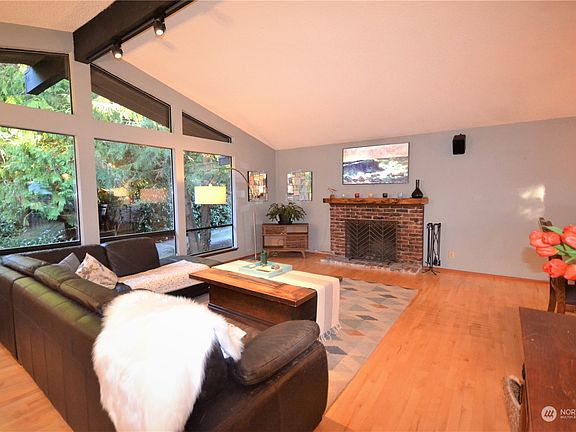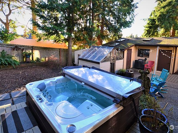 Beautiful move-in ready home down a private drive on a large lot in Broadview. This cozy home features 5bd/2.75 baths, vaulted ceilings, hardwood floors, open floor plan, large light filled windows, two fireplaces(one plumbed for gas), family room, primary bedroom & bath, two car garage and all new paint and carpet. Downstairs is perfectly set up for private MIL w/family room, bedroom ,full bath and area for a kitchen. Detached 1 car garage has roughed in toilet & sink plumbing, possibly can be convert to a legal DADU. Fully landscaped & fenced back yard w/deck to enjoy the afternoon sun, built-in hot tub, patio firepit area, garden space & shed, & a chicken coop/greenhouse. A private oasis in the city and is walkable to Carkeek Park.