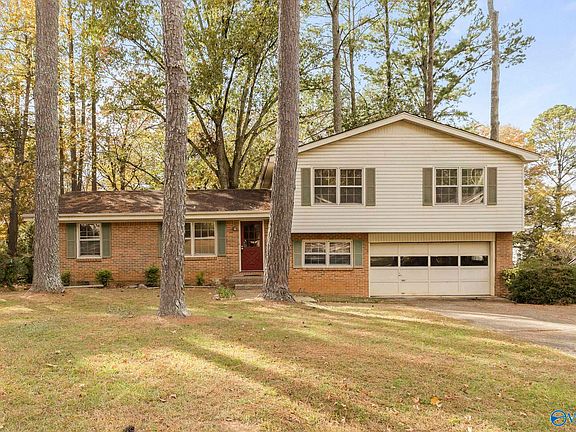 Exceptional size in amazing south Huntsville location, incredibly close to Redstone Arsenal Gate 3 or Gate 1. Four bedrooms featuring hardwood flooring plus 2 full baths. Spacious living room, dining room, and eat-in kitchen. Interior freshly painted, with hardwoods exposed on the main level and upstairs hall, staircase, and bedrooms. Family room with adjacent glass solarium overlooking fenced backyard. Lower level with study, laundry, and a huge two-car garage with workshop space. An estimate is available for replacing study carpeting and extending same flooring into laundry. Sold "as is" but prelisting inspection and data on foundation reinforcements are available.