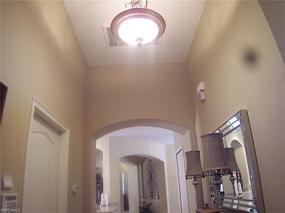 Immaculate, Mediterranean styled three bedroom, two bath with den, two car garage pool home. Home is being sold TURNKEY furnished. Everything you see there conveys in the sale! Just bring your personal items, food and move right in. This home has been decorated thru out with upscale furnishings, many options, newer carpet, oversize diagonal tile and accent painting. Tremendous kitchen area with all wood oversize cabinets, stainless appliances, solid surface counters. Plantation shutters throughout. Inside laundry with washer and dryer. Two French door exits to Lanai. Home has in-ground screened pool with removable baby barrier. Rear preserve view with no neighbors behind you. Home security system. Salt system pool. Auto irrigation system. Hurricane shutters. The Daniels Preserve community offers the residents a community park, play area, available social golfing/membership. HOA fee is only $345 quarter. See accompanying Visual Tour for further details of home.