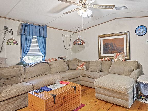 This adorable manufactured home is nestled in 2.5 acres with a fabulous garden area fenced in for your pups and a birders delight!! High and dry, with Flood zone X! The property is fully fenced and cross fenced. Bring your horse and chickens!! A tack room, stalls, chicken coop, huge workshop, a beautiful koi pond, there's so much to love about this property!! On a dirt road in a quiet secluded spot. Close to shopping, restaurants, medical. 45 minutes to Tampa Airport.