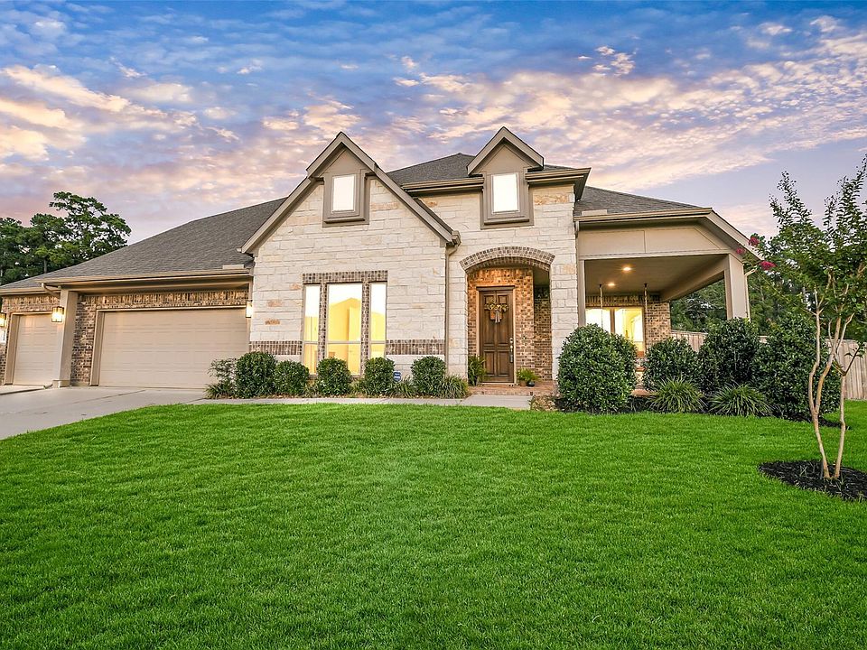 This stunning home in Water Crest on Lake Conroe perfectly blends luxury and comfort. With striking elevation and an inviting ambiance, it features a formal dining room and a chef’s dream kitchen. The kitchen boasts a spacious island, elegant quartz countertops, and double ovens, seamlessly flowing into the family room and breakfast nook—ideal for entertaining. The primary bedroom serves as a serene retreat, complete with a lavish full bath. Two additional bedrooms on the main floor share another well-appointed full bath. Upstairs, discover a versatile game room and media room, along with an extra bedroom with its own full bath, providing ample options for relaxation. Step outside to a covered patio and outdoor kitchen, overlooking a stunning pool and spa, all surrounded by lush greenery—creating a perfect setting for gatherings. With 4 bedrooms, 3.5 baths, and durable polyurea flooring in the garage and a generator, this home has so much to offer. Come view this lovely home!