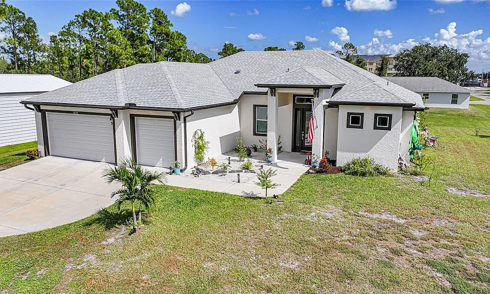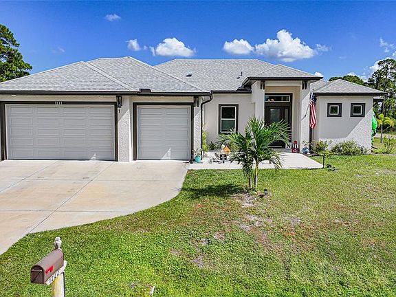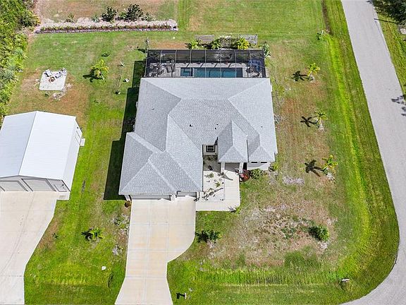 Welcome to 1222 Agnew Street, a stunning 2023-built custom home that beautifully blends modern comfort, thoughtful design, and the best of Florida living. Perfectly situated on a spacious .46-acre corner lot in a desirable Port Charlotte neighborhood with no HOA and no flood zone, this property offers the privacy, freedom, and style today’s buyers are looking for. Step inside and experience a bright, open-concept floor plan designed for effortless entertaining and everyday comfort. The home’s modern aesthetic is elevated by tall ceilings, large baseboards, and expansive windows that fill every room with natural light. The gourmet kitchen seamlessly connects to the great room and dining area, creating a warm and welcoming space ideal for gatherings with family and friends. The owner’s suite is a serene retreat featuring his and hers walk-in closets and a luxurious ensuite bathroom designed for relaxation and convenience. Two additional bedrooms provide ample space for guests, family, or a home office setup—offering both flexibility and functionality. Step outside to your private backyard oasis, where resort-style living awaits. The heated saltwater pool and spa are perfectly complemented by a spacious, corner-to-corner screened lanai, offering plenty of room for lounging, dining, and enjoying the Florida sunshine year-round. Whether you’re hosting a poolside barbecue or unwinding after a long day, this outdoor space is designed for pure enjoyment. Car enthusiasts and adventurers alike will appreciate the oversized three-car garage and the custom-built 30x30 RV/boat storage building, providing ample room for all your vehicles, recreational equipment, and projects. Located in a highly sought-after area of Port Charlotte, this home is just minutes from shopping, dining, schools, golf courses, and the waterfront parks along Charlotte Harbor. With easy access to I-75 and nearby Punta Gorda, you’re never far from the best Southwest Florida has to offer. Modern elegance, a spacious layout, and exceptional outdoor living—1222 Agnew Street is more than just a home; it’s a lifestyle waiting to be enjoyed.