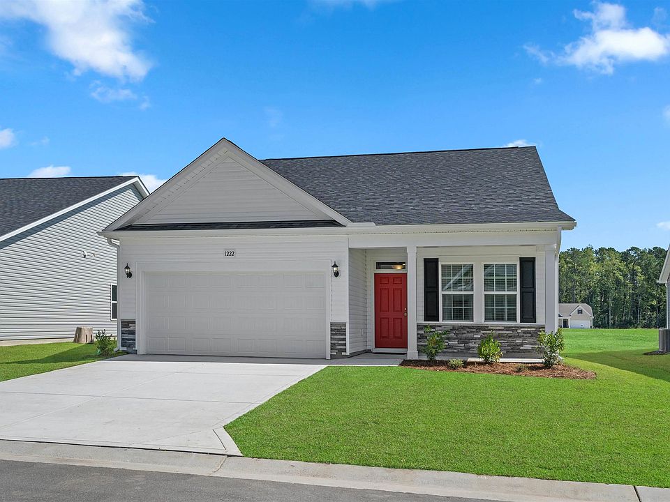 Cascade plan has 2 bedrooms, study and 2 full baths with laundry room. This home also has a full front and rear covered porch. Our design team has added the following designer features to this home: French doors on the study. Laminate flooring in the living area. Carpet in the bedrooms. Upgraded quartz countertops to the kitchen and primary bath. Tile in both bathrooms. Kitchen backsplash. White cabinets with stylish hardware. Comfort height toilets. Full sod and irrigation. 30 architectural shingles. Upgraded baseboards and casings. Too many features to list! Call for more information. Ready now. Fantastic location with easy access to 14 gold courses within a 7 mile radius and close to both North and South Carolina beaches, restaurants and shopping! "Photos are of a similar Harmony home. (Home & community information, including pricing, included features, terms, availability and amenities, are subject to change prior to sale at any time without notice or obligation. Square footage's are approximate). Photographs, pictures, colors, features, and sizes are for illustration purposes only and will vary from the homes as built.