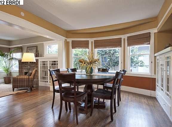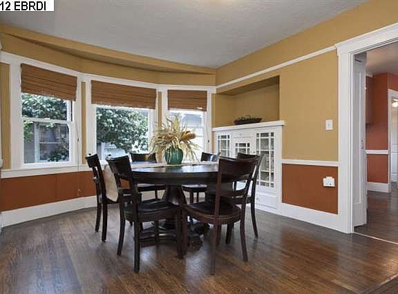The large open space of the living room and dining room are inviting and practical. Wood details are accentuated by the contrast in paint colors and hardwood floors. Numerous windows bring the southern light into the community rooms and the kitchen. Ample space in the kitchen allows optimal flow and room for a movable work island or table. The master bedroom has two closets and a view of the yard and trees. The front bedroom off the living room is great for an office/guest room. The deck and grassy backyard with southwest exposure encourages outdoor living, relaxing and play. This special street and location is convenient to the Monterey Market area, Gourmet Ghetto, Solano Avenue, schools and BART.