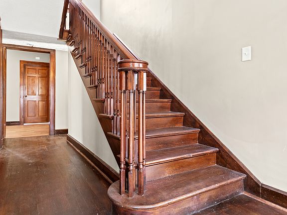 Gorgeous fireplace mantelClassic bathroom tileStrong curb appealOriginal built-insRich trimArched french doorsStunning staircase