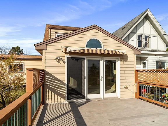 The views of Lake Superior are absolutely beautiful from both levels from this sweet 3 bedroom, 4 bath home, featuring a main floor addition of the primary bedroom, with private bath and laundry hook-ups. The efficient newer custom oak kitchen includes the dining area with pass-through to the living room and it's open to the family room that accesses the spacious deck, and features a vaulted ceiling, gas fireplace, a retractable power awning, and a convenient powder room as well. Upstairs you'll find two more bedrooms and full bath, and in the full basement where the washer and dryer currently live, there's another 3/4 bath, mechanicals, workshop and more good storage. And, you have not one but two detached garages on the alley for a total of 3 stalls! The property has established perennial gardens and several lovely apple and cherry trees, too. This well maintained and updated home is waiting for the new owner to enjoy all it has to offer, and you'll never tire of those views!