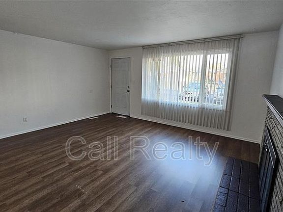 *Spacious living room with wood laminate flooring (fireplace is non-functional)