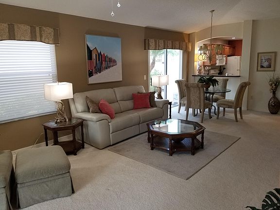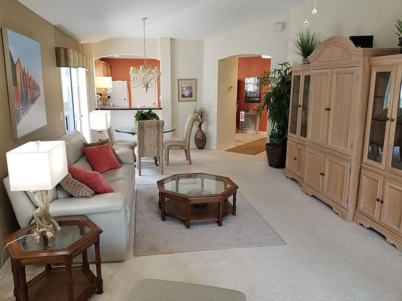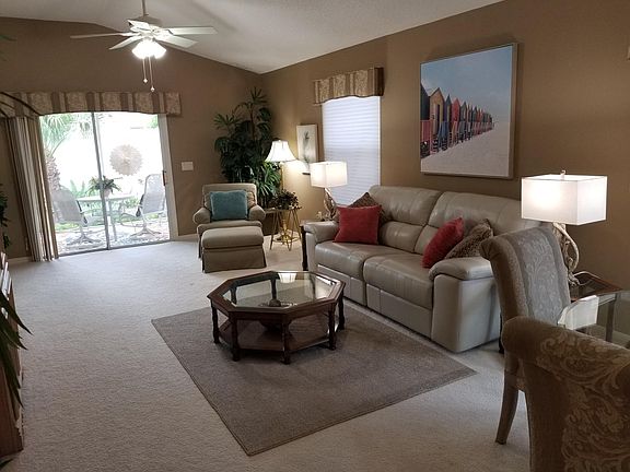 Inspiring the Perfect Vacation in The Villages! Our beautiful and professionally decorated Virginia Vine Villa is located in the very desirable VILLAGE OF VIRGINIA TRACE which is within walking distance or short golf cart ride to Lake Sumter Landing and its Town Square which has the finest dining, shopping, and free nightly entertainment. This is a short-term vacation rental and not available for long-term leases. Rent varies by month.