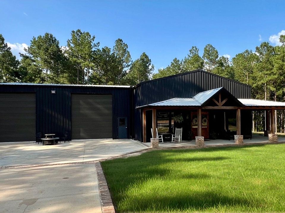 This one-of-a-kind modern farmhouse-style barndominium offers the perfect blend of rustic charm and industrial flair, all nestled on 55.69 surveyed acres surrounded by beautiful towering pine trees. With 4,132 sq ft of heated and cooled living space, this home was designed with comfort, functionality, and entertaining in mind. Step inside to find 3 spacious bedrooms and 2.5 bathrooms, all featuring 10-foot ceilings and 8-foot doors throughout, creating an open and elevated feel in every room. The kitchen comes equipped with stainless steel appliances and seamlessly flows into the open living area, where industrial-style exposed ductwork adds bold, modern character. Around every corner, you'll find thoughtful design details that bring both style and practicality together. For those who love to entertain, this home truly delivers. Enjoy a connected shop complete with a full bar and beer on tap — perfect for game nights, parties, or relaxing after a long day. Inside, you'll also find a cozy coffee and wine bar, complete with a built-in wine fridge — ideal for quiet mornings or winding down in the evening. The spacious layout and peaceful pine-studded acreage offer endless potential for outdoor gatherings, hobbies, or simply enjoying the view. Whether you're dreaming of a private retreat, an entertainer's paradise, or your forever home in the woods — this stunning property is ready for its next chapter. Could it be yours? Let's make it happen! AGENT OWNED PROPERTY
