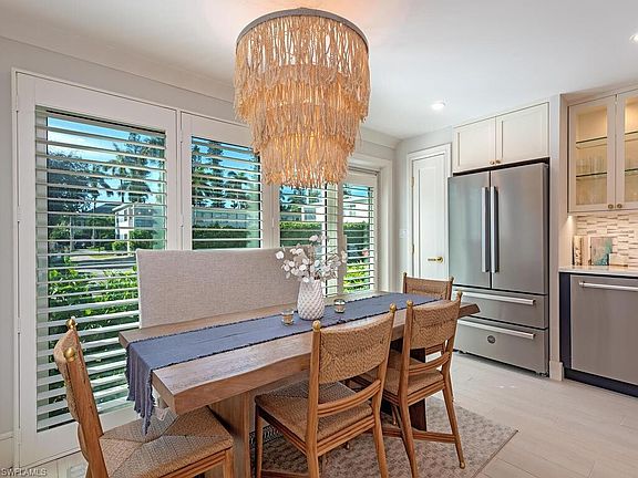 Just a short stroll from the pristine beach, bustling Saturday farmers market, and vibrant 3rd Street South, this stunning 2-bedroom, 2-bath condo offers an unparalleled lifestyle in one of Naples' most sought-after areas.Indulge in the elegance of this meticulously remodeled first-floor unit, showcasing opulent furnishings and exquisite impact doors and windows. This poolside haven embodies refined living, with no detail overlooked in its comprehensive renovation. Enjoy striking oversized wood porcelain tile flooring, custom trim, and elegant 3-panel solid core doors fitted with premium Emtek hardware, creating an atmosphere of sophistication.The gourmet kitchen is a culinary dream, featuring professional-grade appliances, custom cabinets with polished stainless steel and glass fronts, and designer lighting that illuminates the space. A stunning quartz peninsula with a captivating waterfall edge serves as the perfect centerpiece for entertaining or quiet moments.Equipped with full hurricane protection, including impact-rated windows and doors, this home offers peace of mind during storm season. The building has successfully passed all required Florida condominium inspections, ensuring structural soundness and compliance with current standards.Located just steps from the Gulf and the world-famous Naples Pier, enjoy morning walks along the beach, sunset views, and the charm of nearby Third Street South and Fifth Avenue South, where fine dining, boutique shopping, and art galleries await. Parks like Cambier Park and Baker Park are also just minutes away, providing green space and recreation right in town.This move-in-ready home is ideal as a primary residence, seasonal retreat, or investment opportunity. With its turnkey furnishings, updated interior, and unbeatable proximity to the beach and downtown Naples, this property captures the very best of the Naples lifestyle.
