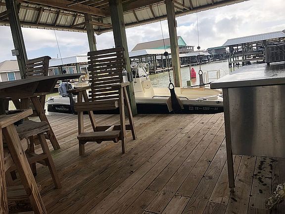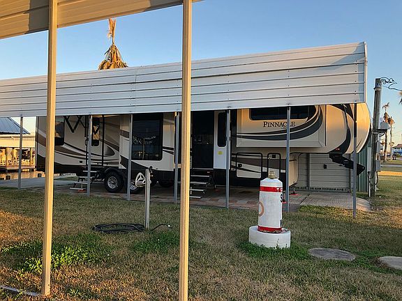 Continuous culverted road frontage connected directly to two steel re-inforced RV covers on each with space to accommodate up to a 45’ rv with slide outs. Additional metal storage building with an overhead door for easy storage and accessibility. A large covered deck offers dual slips, each equipped with a boat lift, water and power. There is plenty of room for leisure and entertaining out of the sun and in the shade. The covered patio area also comes with over-sized stainless steel fish cleaning station and a separate cooking/ prep table with storage. Deck furniture included. Canal connects directly to the ICW with a short boat ride to the East Bay. New septic components this past year, new stainless hardware on boat lifts. Best neighbors, clean neighborhood, NO HOA!