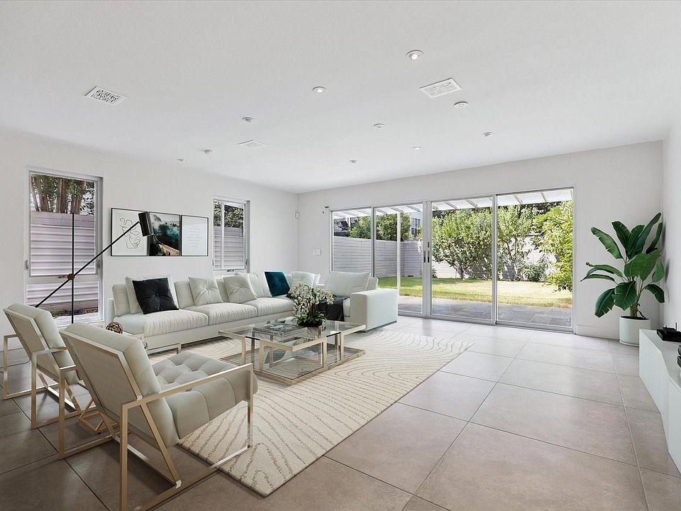 This residence has been completely and recently remodeled, offering a blend of sophisticated design and practical amenities. The home showcases a refined modern aesthetic with updated fixtures. Expansive windows bathe each room in natural light, with a cohesive color palette of soft neutral colors. High ceilings make the interior feel even more spacious. First floor primary living area. Entertain with ease in the open concept living room, where the living, dining, and kitchen spaces merge seamlessly. The kitchen offers a Sub-Zero refrigerator, Miele Induction stove, oven and dishwasher, Poggen Pohl high-end cabinetry and premium countertops. A large island offers abundant seating and prep space. The dining area enjoys backyard views through glass doors. The primary suite and bath features two walk-in closets, double vanity and bidet Toto toilets. The large backyard offers a pergola and plenty of room for a future pool. The residence is equipped with an automated osmosis water system.