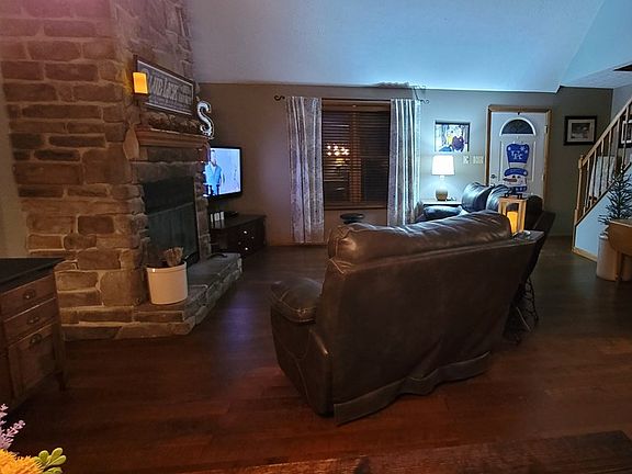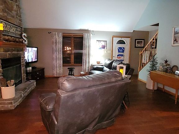 Beautiful home on 4.2 acres featuring a gorgeous fireplace, geothermal heat/air, and a wrap-around porch.