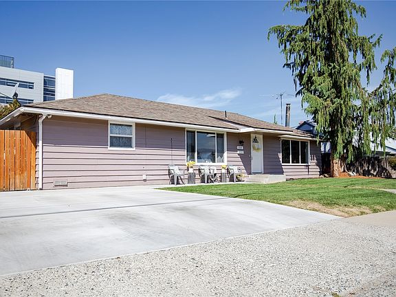 LOCATION! Very desirable area in Wenatchee located close to hospital and great schools. This 3 bedroom, 2 bath home has an open concept kitchen with stainless appliances that stay, generous cabinet and counter space, including a breakfast bar. Spacious dining room has a large pantry & extra living space for work or play. Living area with large windows drawing lots of natural light. Laundry area leads through back door to stamped concrete and newly planted grass. Shed and play set stay. Down stairs has a storage area and office/playroom. Updated electrical and luxury vinyl. Both the primary bedroom bath and main bathroom have been updated. Truly a place to call home!