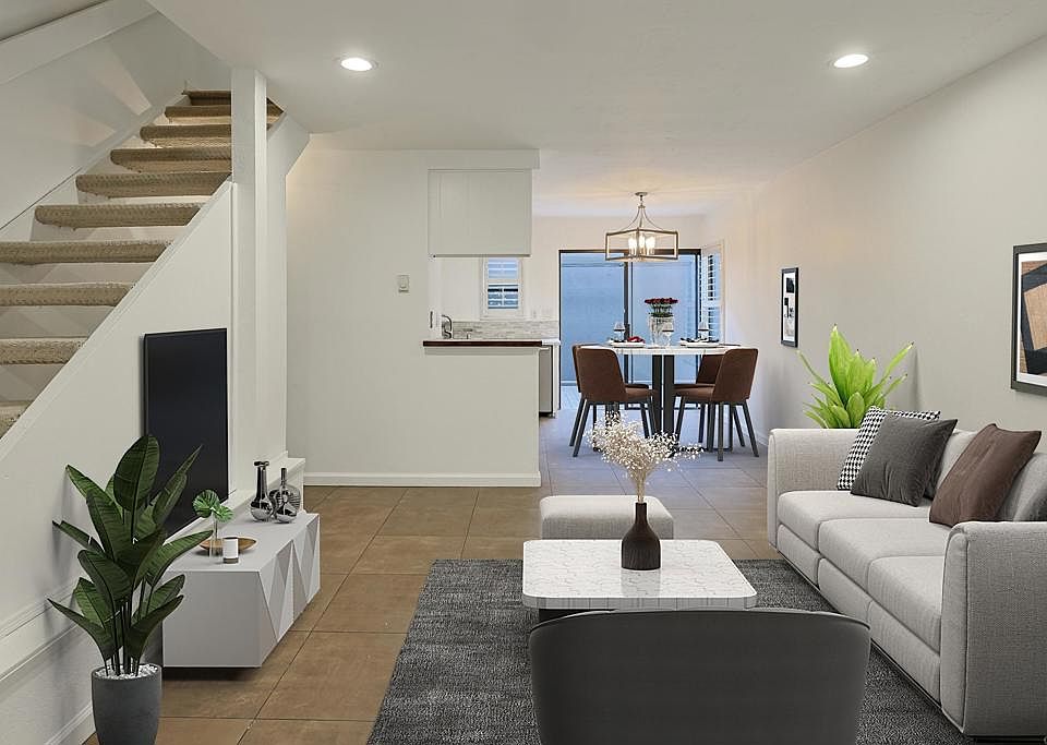 Prime location, great HOA amenities, all at an affordable price. This North Rim townhome is tucked into the hills of Linda vista overlooking Fashion Valley and Riverwalk golf course. With most of the square footage invested in the living, dining, and kitchen, that flows into a private patio, this home lives much larger than the square footage shows. Upstairs you will find the bedrooms divided by a shared bathroom. The primary features its own balcony. If you were to access the home from the garage, you will find the laundry there as well as plenty of storage and rack space. A short walk you will find yourself at the resort style pool area complete with BBQs, lounging area and a spa. If that wasn't enough the clubhouse has its own kitchen, dining, sunken living room, pool table area, and loft with a ping pong table. From table tennis to actual tennis, this community has full size tennis courts as well. With a fresh coat of paint and new carpet, this townhome is ready for you to call it your own. Come see it for yourself today!