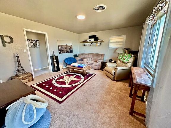 Nice 3-bedroom 2-bath single car garage home with approximately 1,254 sq ft and a large fenced in back yard in Floydada. New flooring has been installed in the kitchen, hallway and main bathroom. This home is very well maintained and comes with a newly purchased portable storage building for extra storage and has a circle driveway for convenience and extra parking. Reach out if you are interested in taking a look at it!