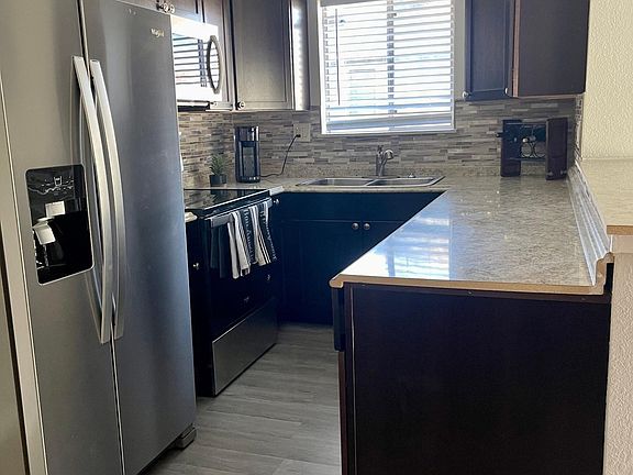 Stylish kitchenInviting island countertopSilver appliancesSpacious bedroomsGenerously sized closets