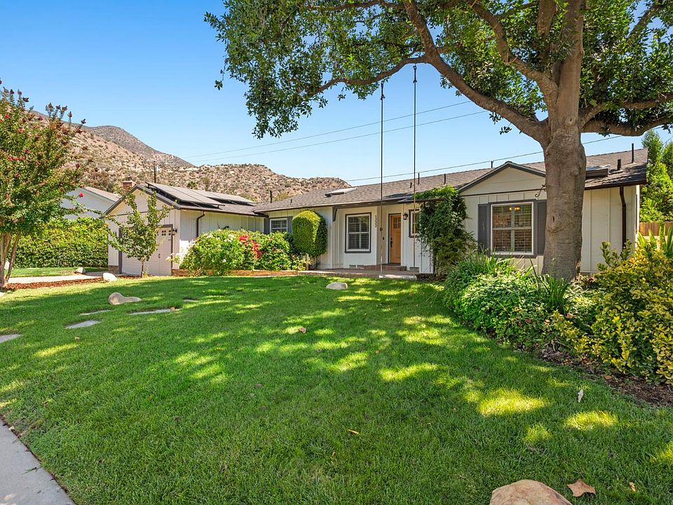 Don't miss this turnkey gem in Ojai's coveted East End! Built for entertaining, this sprawling ranch style one story boasts a roomy gourmet chef's kitchen with a Thermador professional range and dishwasher, granite countertops, farmhouse sink, and an extra in-island sink for food prep.The property has skylights throughout, Bose in-ceiling speakers and an oversized family room with its own bath and entrance that can be utilized as an office, a fourth bedroom, or an in-law unit. The living area, kitchen and bedrooms have beautiful hardwood floors, and the property also features two charming stone fireplaces. The home has a new roof (installed 2024) with owned solar panels.In the spacious back yard, allow yourself to be transported to a lush paradise that offers a covered lanai with outdoor ceiling fans, mature verdant landscaping, citrus trees, spa tub, gas BBQ hookup, firepit area and a thriving Koi pond with a waterfall. The two car garage features a workbench, built in air compressor and wall-to-wall storage. The spacious, shady front yard, featuring thriving avocado and apricot trees, invites hours of play for littles and pets, as well as a lovely spot to hang out with guests.
