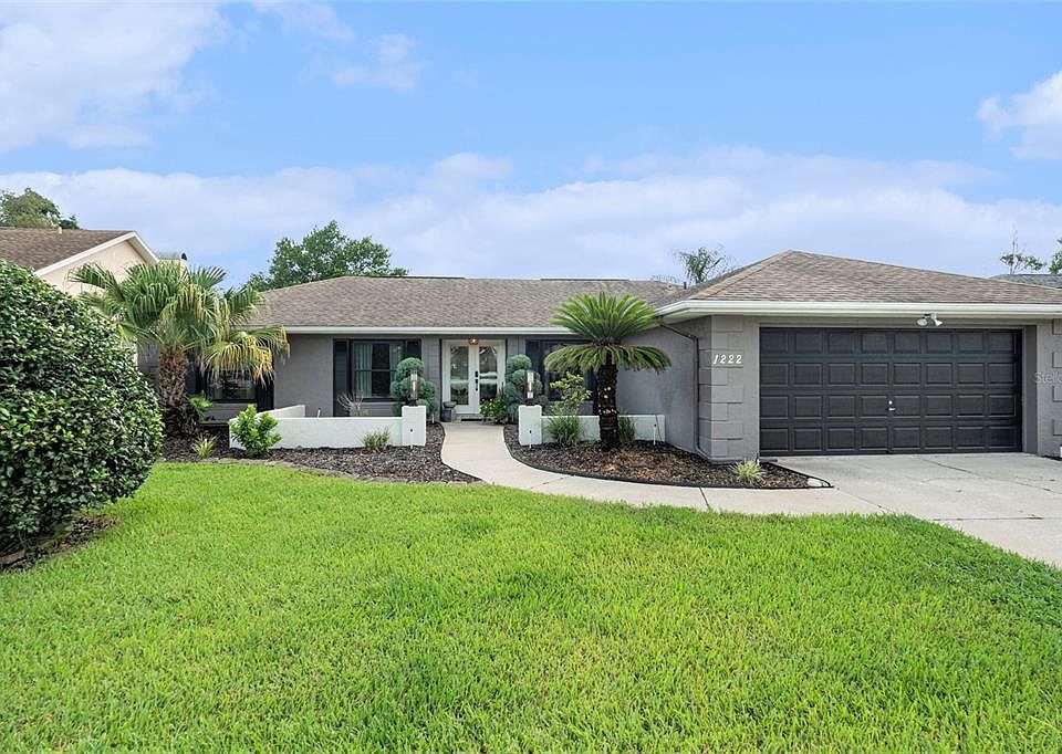 Modern Charm Meets Relaxed Florida Living in Seven Hills Welcome to this stylishly updated 2-bedroom, 2-bathroom pool home, perfectly situated in the sought-after Seven Hills community. From the moment you step inside, you’re greeted by a calming color palette of soft blues, grays, and whites that create a serene and inviting atmosphere. Natural light pours into the spacious living area with soaring vaulted ceilings , offering unobstructed views of the sparkling Salt water private pool with a rock waterfall—your own personal oasis.The beautifully designed kitchen is a true showstopper, featuring shaker-style cabinetry in complementary tones, solid surface countertops, a sleek subway tile backsplash, stainless steel appliances, and industrial-inspired lighting that adds just the right touch of character. A custom-painted barn door provides a stylish and functional separation between the guest suite and main living areas, offering privacy for visitors or a peaceful home office setup. The spacious primary suite is thoughtfully positioned near the indoor laundry and includes a fully renovated ensuite with a double vanity, a walk-in shower, and a generous walk-in closet with built in features. For fitness enthusiasts, this home offers the best of both worlds—a private pool ideal for swimming laps and access to community sidewalks perfect for morning jogs or evening strolls. Plus, you’re just a short distance from the Hernando County YMCA across the main street from the community.