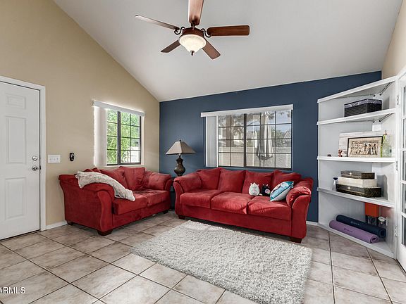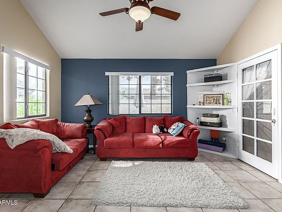 Charming 2 Bedroom, 2.5 Bath condo in a FANTASTIC location in awesome Tempe 85283!! . Dramatic vaulted ceilings, neutral tile flooring downstairs, a cozy fireplace in the family room & two security doors. Kitchen features new countertops and stainless appliances in 2021, wine glass holders for an elegant look! HUGE primary bedroom with incredible W/I closet for storage, wood-like floors and balcony too!! Bedroom two also has a W/I closet and is super spacious!! Both bathrooms feature skylights to bring in lots of natural light! Garage has built-in shelves too!! Beautiful pool area for ultimate relaxation and perfectly located close to major highways, shopping and restaurants, downtown Phoenix, ASU...anywhere you want to be!!