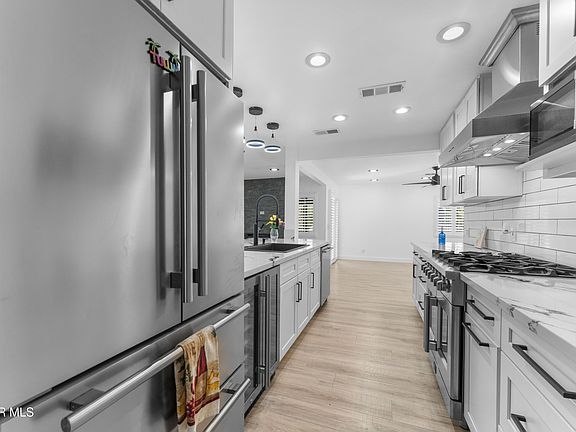 Price Reduced! Open Hse 9/28 12- 3 Appears to be largest, most upgraded, Beautiful Home in this prime Westside Neighborhood! BEAUTIFUL- COMPLETELY REMODELED- MOVE IN READY! High end, Major Upgrades! Exceptionally spacious Primary Bedroom- large enough to accommodate a bedroom and add'l Office or Den. 5 Bedroom + 2 Bathroom Home in highly sought after WESTSIDE Neighborhood! Area Qualifies for Buyer MONETARY Assistance! The gourmet kitchen is a true highlight, showcasing quartz countertops, a large island with bar seating, custom cabinetry, and high-quality stainless-steel appliances—designed to meet all your culinary needs in style. Elegant FIREPLACE! Built in WINE RACK. Central heat & A/C. Fabulous Recessed Lighting and custom Lighting, that is adjustable & much more. (Extra storage space Area)! Additional upgrades include New electrical panel, Dual-pane windows, also lovely shutters. Contemporary ceiling fans Designer lighting throughout. A Built in Refrigerated- Wine Bar, a Gorgeous FIREPLACE, with adjustable lighting! Move In Ready- do not miss this one!!! The Home has been updated throughout! (Be sure to go to the back yard: there is potentially a Storage type House (unfinished), with Door, window, etc., that can be used potentially, with your renovation, as a GUEST HOUSE or a Workspace, in the back yard. Also, **Also a Versatile bonus area - inside the house has been added, that can potentially serve as an additional living space and/or potentially a very spacious 5th bedroom/office- (this room has a closet), - offering expanded living space. New Fridge, STOVE, - (Washer/Dryer not included, these items are Negotiable)! Elegant FIREPLACE! Open-concept layout, awesome contemporary floor plan is enhanced by wide-plank new flooring, fresh paint, recessed lighting, and a sleek feature wall with a modern FIREPLACE. Bedroom is spacious and filled with natural light. The bathrooms have been beautifully updated with contemporary fixtures and designer finishes
