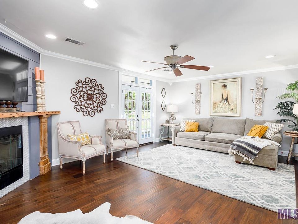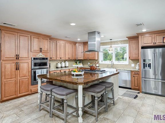 Rare Find! Beautiful Acadian Style home located in St. Amant, 5 bedrooms, 3 bath home situated on 2 acres. Entering this home, you will notice the wood burning fireplace (with gas ignition) and hardwood flooring that flows throughout the main areas and all bedrooms. Ceramic tile in the kitchen and all wet areas-No Carpet! The kitchen has an oversized island with a butcher block countertop, custom cabinets, granite countertops, gas cooktop, porcelain farmhouse sink and stainless steel appliances. Spacious master bedroom with walk in closet and en suite bathroom.. Master Bathroom features a free-standing soaker tub, separate custom tile shower, walk in closet, and double vanity vessel sinks. Fifth bedroom is located near the kitchen and has a separate full bathroom. This home was built for entertaining with a huge front porch that is so welcoming, and the back patio gives a view of the backyard and an adorable tree house! This home is a one owner home and has been well maintained throughout the years. It includes many upgraded amenities.